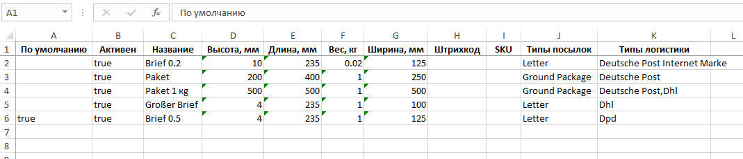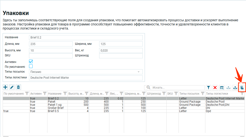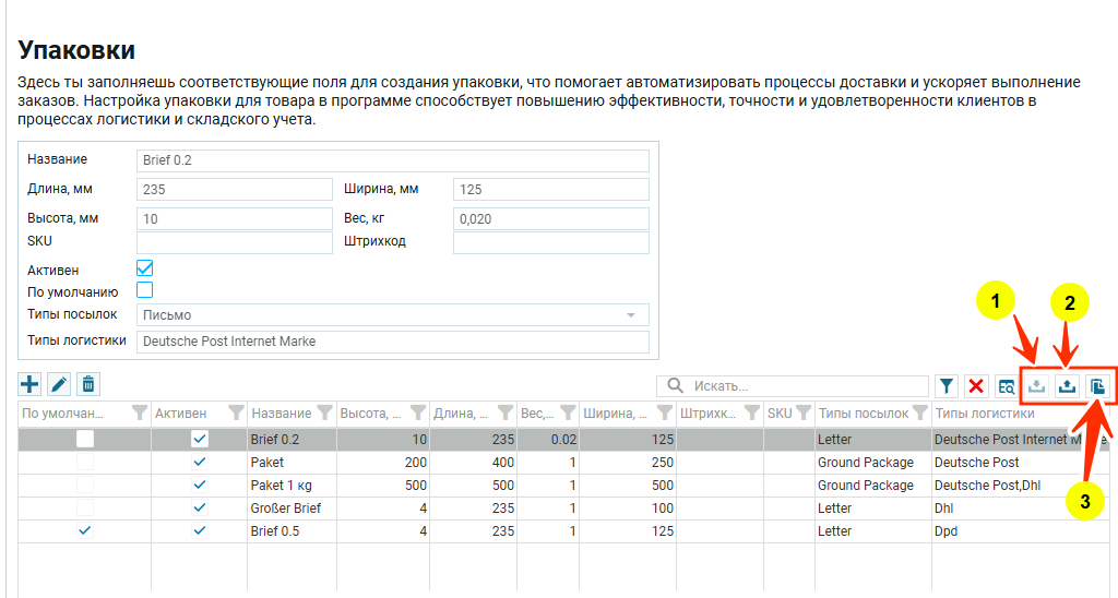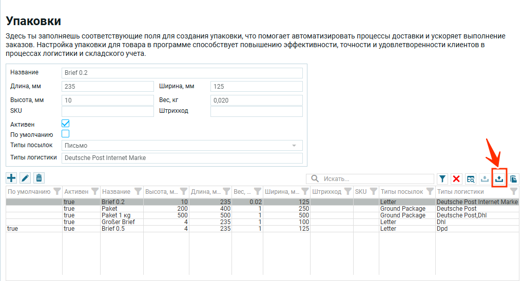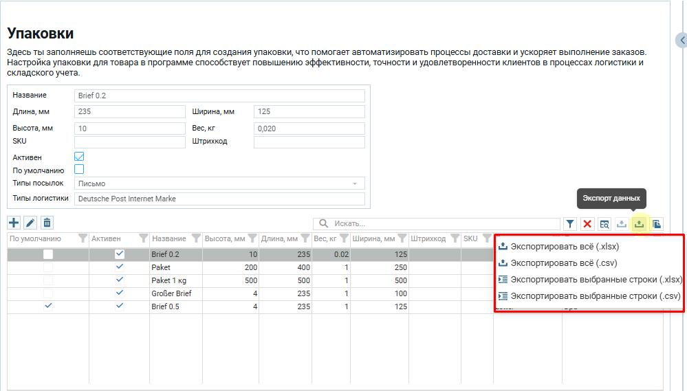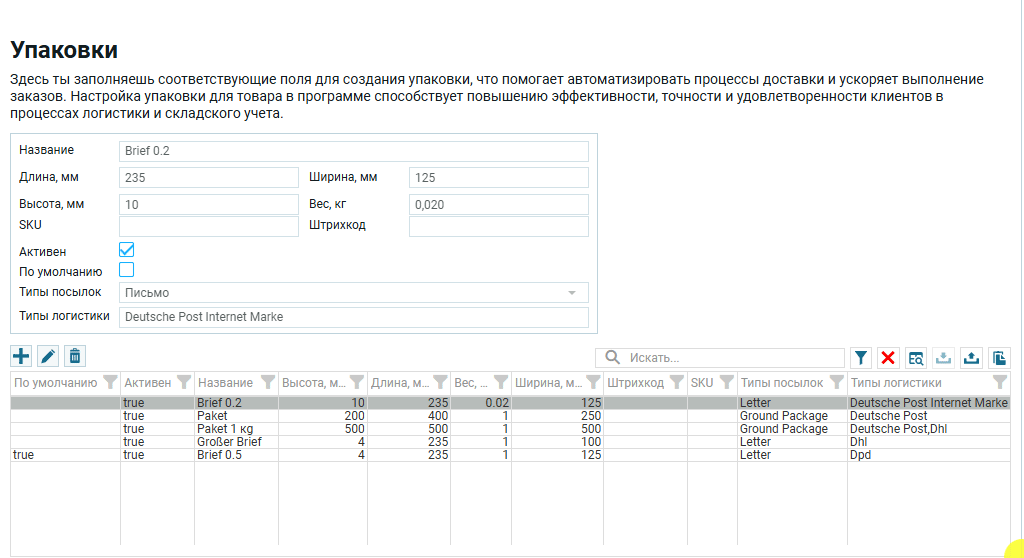 << Вернуться назад к настройкам Упаковки